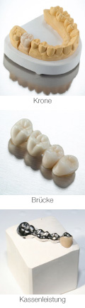 Eine Krone umfasst Teile des oder den gesamten in den Mundraum ragenden Anteil eines Zahnes. Dadurch bekommt der Zahn wieder seine ursprüngliche Form, ein fast natürliches Aussehen und genügend Stabilität. Ihr Zahnarzt schafft für die Restauration im Mund die Bedingungen, die es ihm erlauben, auf dem rundherum beschliffenen Zahn eine künstliche Krone zu befestigen. Dabei muss darauf geachtet werden, dass der beschliffene Zahn stark genug ist, noch tief und fest genug im Knochen steckt und ob die Gingiva entzündungsfrei ist und wie Ober- und Unterkiefer zueinander stehen. Grundlage jedweden Zahnersatzes ist jedoch die professionelle Zahnreinigung (Prophylaxe), da wie bei einem Hausbau nur auf einem gesunden, stabilen Fundament aufgebaut werden kann.