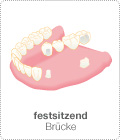 Bei einer Zahnlücke, d. h. wenn neben den fehlenden Zähnen noch eigene Zähne vorhanden sind, ist es möglich, festsitzenden Zahnersatz in Form einer Brücke einzusetzen. Hierfür werden die Pfeilerzähne zu beiden Seiten der Lücke soweit beschliffen, dass Platz und Halt für die Aufnahme der Kronen geschaffen wird. Diese Kronen tragen dann die zu ersetzenden Zähne in Form von Brückengliedern. Diese nachher fest einzementierten Brücken eignen sich für eine Spanne von bis zu 3-4 fehlenden Zähnen im Oberkiefer und 2-3 Zähnen im Unterkiefer meist recht gut, vorausgesetzt die Pfeilerzähne stehen stabil im Knochen. Als Brückenmaterial eignen sich alle unter den Kronen vorgestellten Material- und Versorgungstypen.